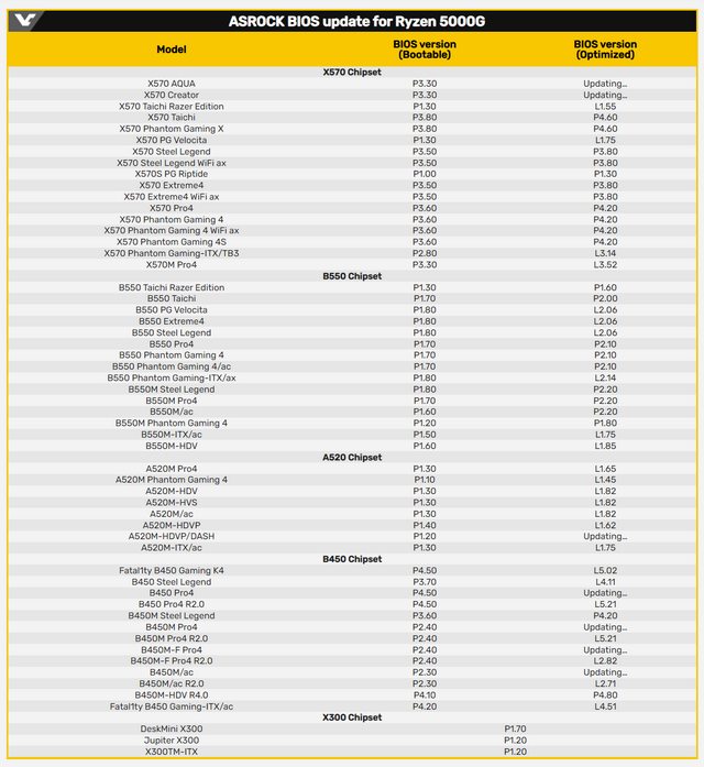 可升级的系列包括华擎旗下几乎所有,有X570、B550、B450 、A520等,没有看到B350等300系列主板,不过意外的是,DeskMini X300和Jupiter X300也可以升级支持,DeskMini X300的小伙伴这下有福了,可问题是这次价格不便宜,重度CPU用户也许才会选择,建议不着急的等等R3 5000G系列。