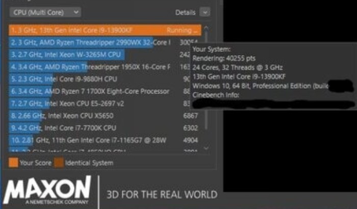英特尔已经正式推出了第13代酷睿处理器,首发的酷睿 i9-13900K、i5-13600K等相关评测要等到10月20日解禁,而现在有一颗不带核显的i9-13900KF提前偷跑了。
