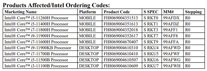 产品变更通知(PCN)中看到,有至少5款第11代移动版标压处理器,以及4个商用桌面级处理器,将从今年6月底起停止订购,最后一批将于2024年1月底发货。