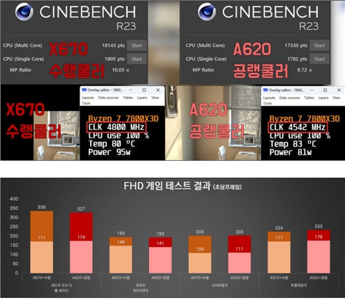 据了解,锐龙7 7800X3D在A620上跑 CineBench R23 单核、多核性能分别只低了1.3%、4.5%,而跑游戏更是低了不超过3%!