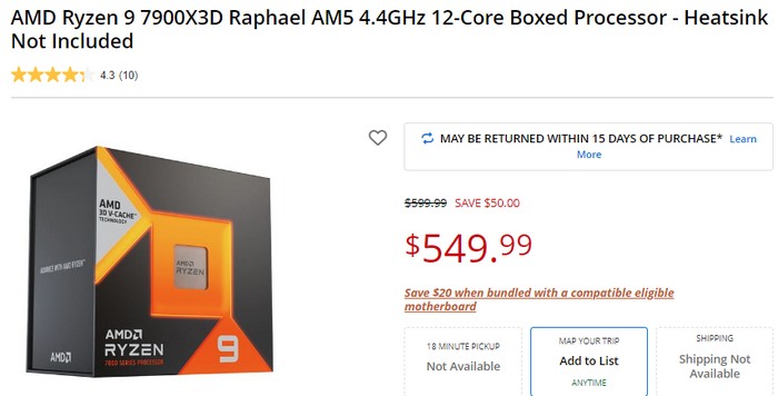 具体来说,Ryzen 9 7950X3D 目前优惠后售价675美元,上市之初是699美元,相当于便宜了24美元(约166元);定位稍低一些的Ryzen 9 7900X3D目前售价549.99美元,上市之初售价是599美元,相当于是便宜了49美元(约340元),这个降幅就有点大了。