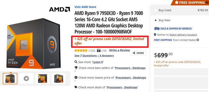 据国外亚马逊、新蛋等线上平台售价信息,带有3D缓存的Ryzen 7000X3D的价格已经开始松动,要知道这才上市了刚刚两个月(2月28日发售)。