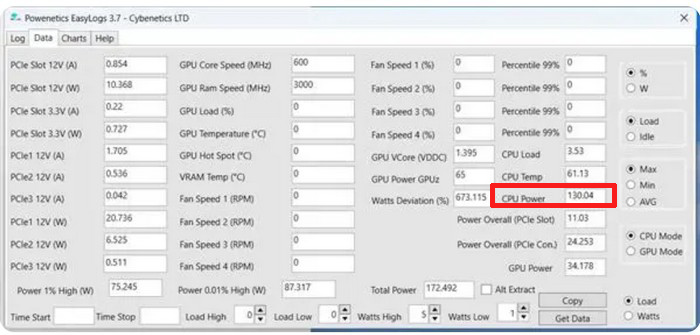 具体来说,用Powenetics v2实时监测功耗,锐龙9 7950X3D待机功耗峰值(注意不是持续的)竟然超过了130W,即便开启PBO自动调频、曲线优化(Curve Optimized) 持续监测15分钟,峰值也能达到约125W。