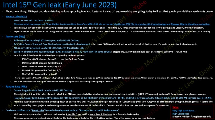 至于Arrow Lake “箭湖”,摩尔已死表示会采用LGA1851针脚,已确定推迟了,要等到明年的Q4季度。这个架构下的产品IPC能效提升在两位数以上。