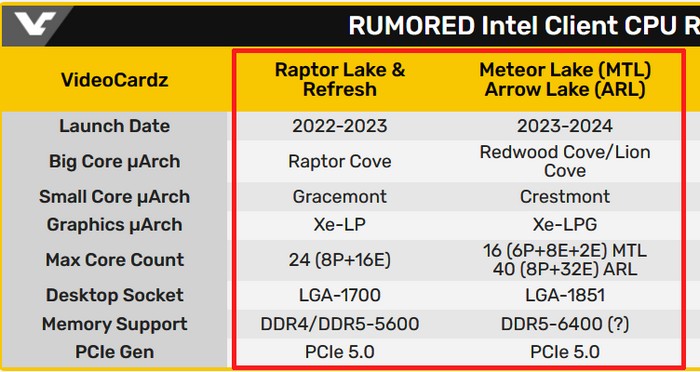 另外,这一代的核心数量会猛增,最高40个,但主要是能效核心,有8P+32E、8P+16E和6P+8E三种组合,性能核心最高是8个,能效就高达32个,比已知的Meteor Lake“流星湖”还要多40%,所以这一代的多线程性能会提升明显。