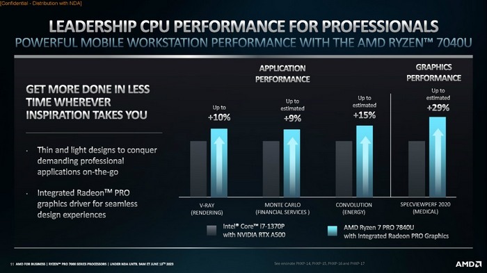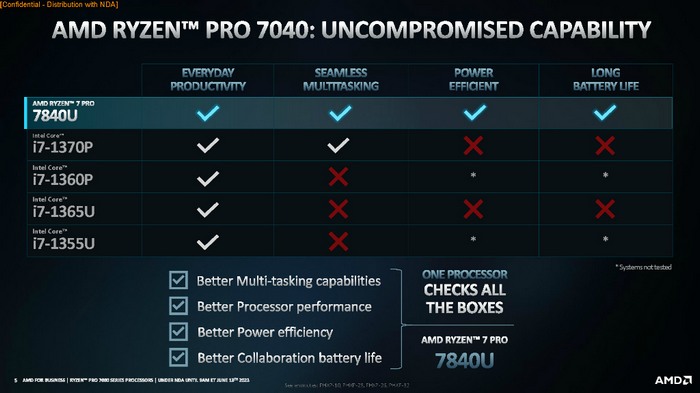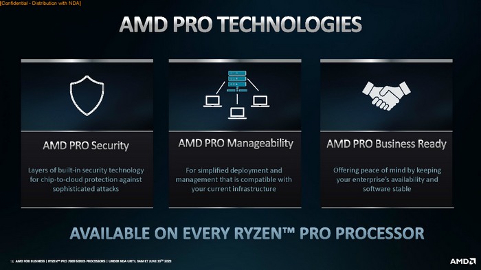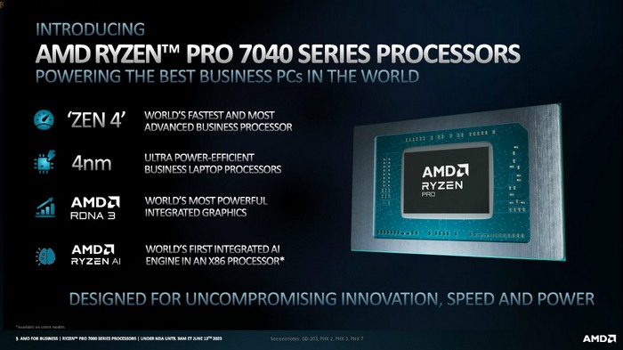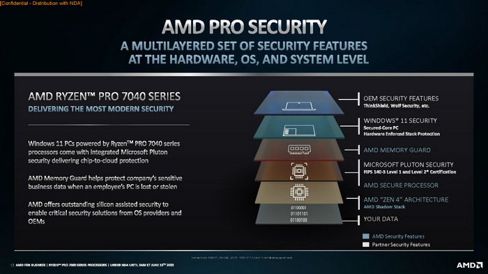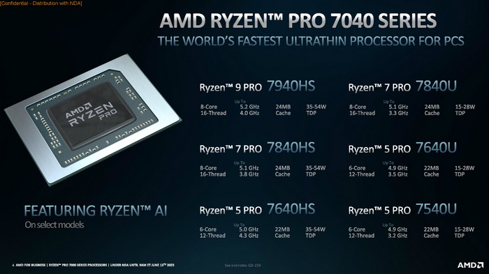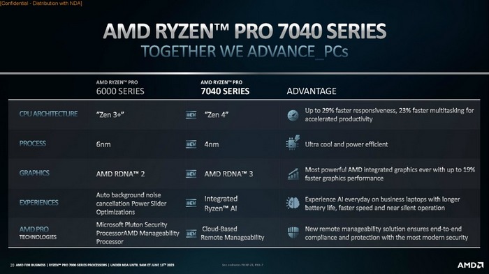 刚刚,AMD发布了锐龙 PRO 7000 系列移动版处理器,针对商用本,在消费级锐龙7040系列基础上增加了安全性以及Ryzen AI技术。