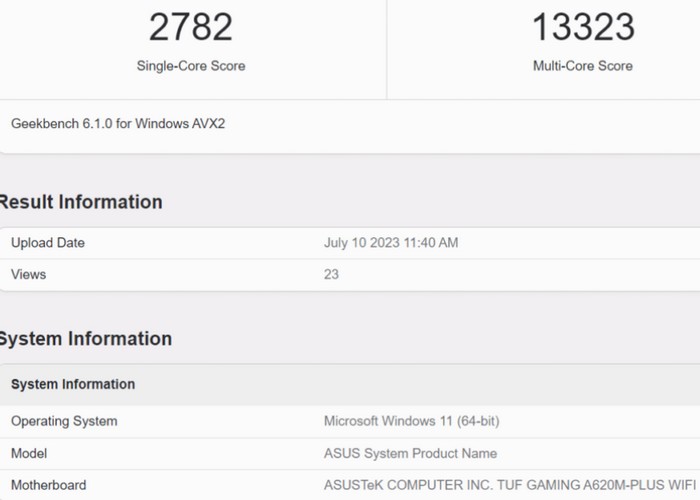 至于性能,单核 2782,多核13323,测试平台是华硕TUF GAMING A620M-PLUS WIFI 主板,用的是 DDR5-6000MHz 内存,Geekbench 6.1版本。