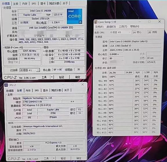 测试平台用的是某嘉的Z790 GAMING X AX,BIOS号时间是今年6月6日的,这说明6月之前的BIOS就已经支持第14代了,这说明5月份厂商就开始内部测试了。