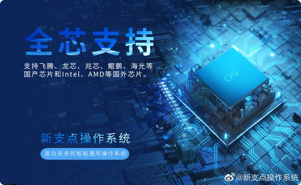 此外,新支点操作系统新版本还拥有“全芯”支持的特点,支持飞腾、龙芯、兆芯、鲲鹏、海光等国产芯片和英特尔、AMD 等国外芯片。
