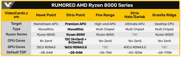 至于大家关心的桌面版 Ryzen 8000 系列APU,目前有消息说不是混合架构,全是完整的ZEN 5 大核心,最高16核心,也集成RDNA3.5 核显,但拥有更多的40个CU单元,核显性能会相当可观。
