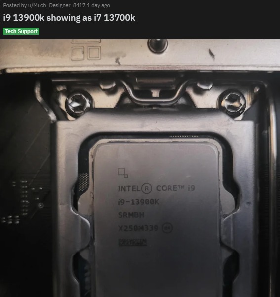 而且看并不是粗糙的打磨重新印字,是激光镭雕,所以那只有一种可能,用的 i9-13900K 的顶盖,但实际是i7-13700K的核心。
