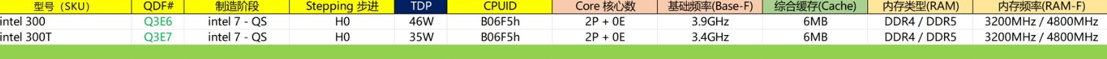 这个系列并不像酷睿N系列强调能效,并没有小核心,全是P性能核心,注重性能,有300 和 300T 两款: