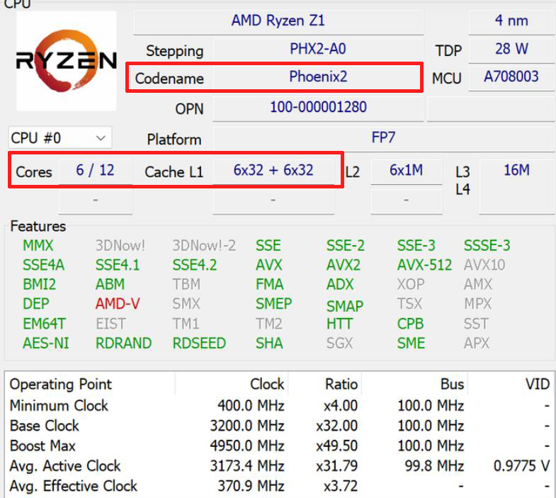 日前,有玩家深度测试了Ryzen Z1,用HW工具检测发现,Ryzen Z1 的核心代号居然是Phoenix 2 ,这和Z1E完全不同,拥有6个核心、12个线程,每个核心均配备相同的缓存结构,三级缓存共16MB。所以,针对掌机的AMD Ryzen Z1系列中实际上是两种架构,完全不是一回事,Z1并非Z1E阉割而来。