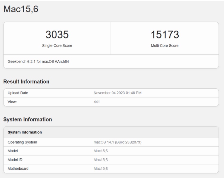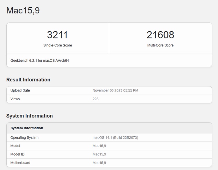 在 Geekbench 数据库中,一款苹果新 MacBook Pro 16 机型进行了测试,搭载了苹果最新的 M3 Pro 处理器,结果显示表现略低于预期,只比 M2 Pro 强一点。