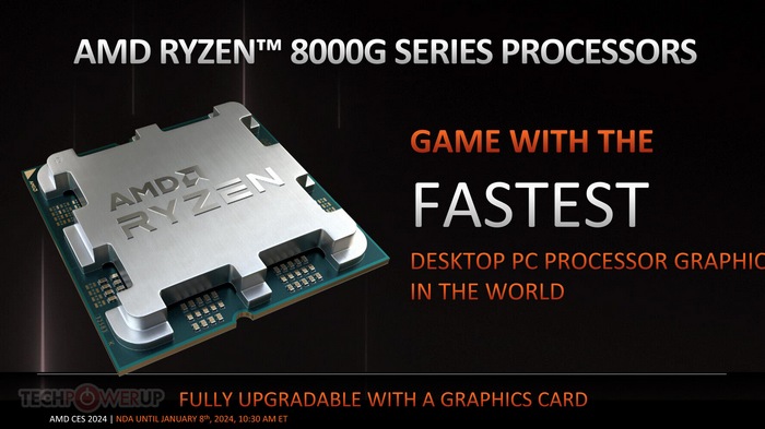 AMD 桌面级锐龙 8000G 系列 APU 将于 1 月 31 日上市,8700G 售价 329 美元(约2350元),8600G 售价 229 美元(约1640元),8500G 售价 179 美元(约1280元),8300G 没有公布价格(暂时不零售)。AMD 声称,8700G 是 i5-13400F 搭 GTX 1650 入门级独显的很好替代者,性能更好,还更便宜。