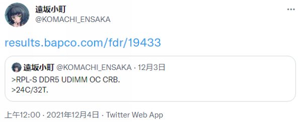 另外,这颗处理器会支持更高的内存,据称是5600MHz DDR5,不过目前测试平台用的是 DDR5-4800 @ 32GB 内存。