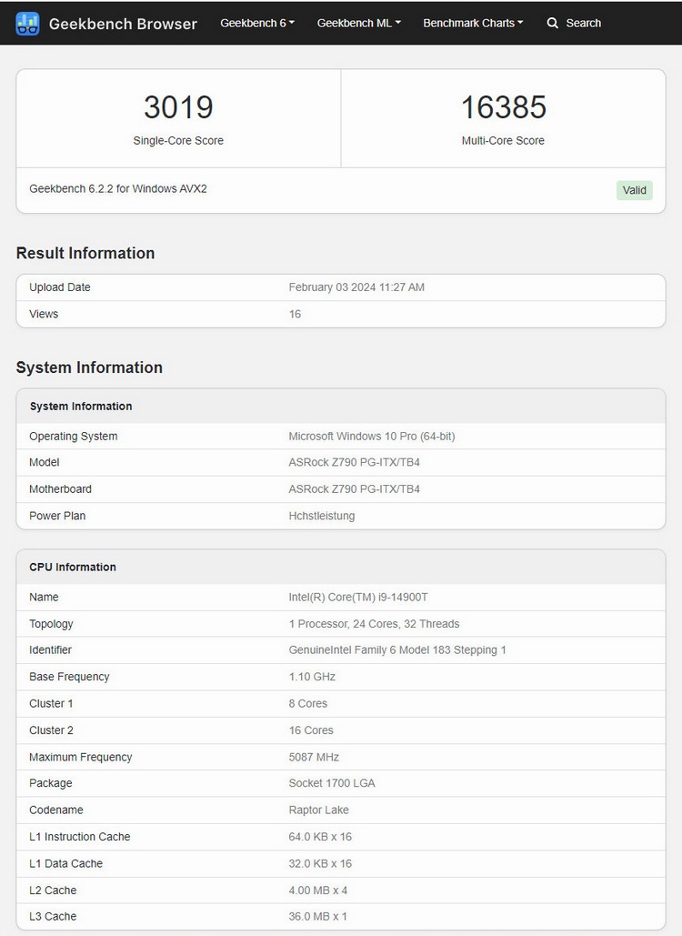 据国外玩家 BenchLeaks 消息,酷睿 i9-14900T 在 GB V6.22 测试中,跑出了惊人的 3019单核成绩,多核成绩更是达到了16385,这个成绩可以比肩AMD Ryzen 9 7900 了。