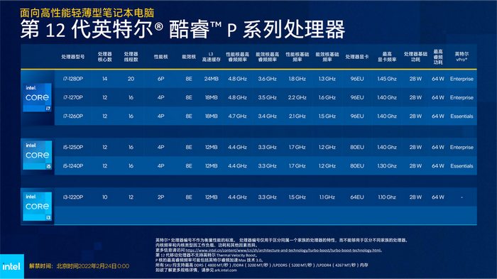 搭载第12代低压和P系列版本的笔记本将在3月-4月陆续登场,包括联想、惠普、戴尔、华硕、LG、微星、三星、机械革命等均已准备就绪,等待放闸。