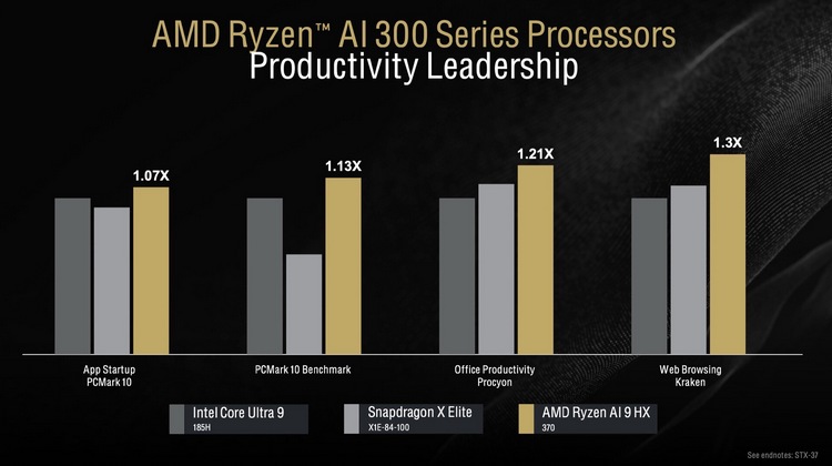 6月 Computex 公布后,今天AMD官方正式发布了新一代 Ryzen AI 300 系列处理器,并公开了其性能,比预期略好。