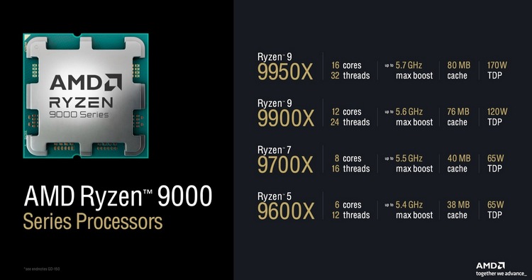 除了 Ryzen AI 300 系列,AMD 今天还正式发布了新一代桌面级锐龙处理器—— Ryzen 9000 系列,更快,能耗更低,支持一键超频。