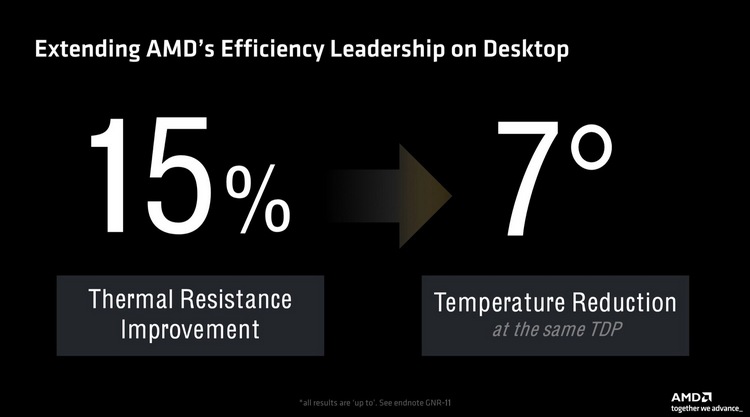 除了能效,这一代的发热量也更低,这要归功于 Zen 5 架构,对比上代,满载情况下可以降低7摄氏度左右,散热器压力更小,系统更凉爽。