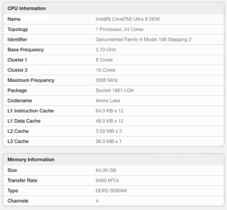 正如之前预测的,随着QS版本开始送样,第一份“箭湖”酷睿 Ultra 200K 处理器的跑分来了。