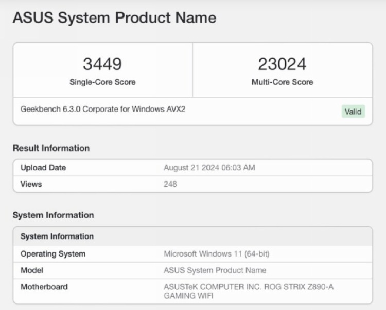 今天,一颗顶级型号酷睿 Ultra 9 285K 低调出现在 GB 跑分库中,显示为24核心,包括个8个P和16个E核心,3.7GHz默频,最高 5.5GHz 睿频、测试平台是华硕的 ROG Strix Z890-A GAMING WIFI ,用了64GB DDR5 内存。