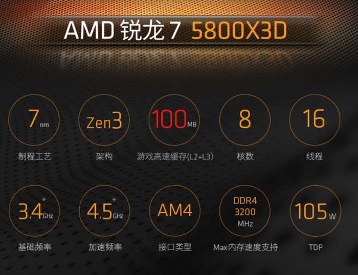 AMD 锐龙7 5800X3D 是之前的Ryzen 7 5800X 的改良版,采用3D缓存技术,大幅优化游戏性能。