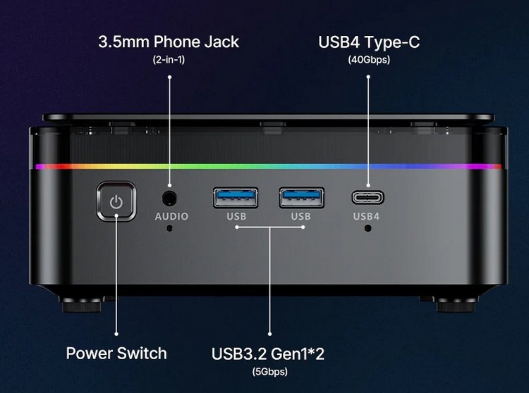 简约方盒子方案,机身顶部有一圈儿 RGB 灯效,颜值提升不少,机身用料和尺寸没说。
