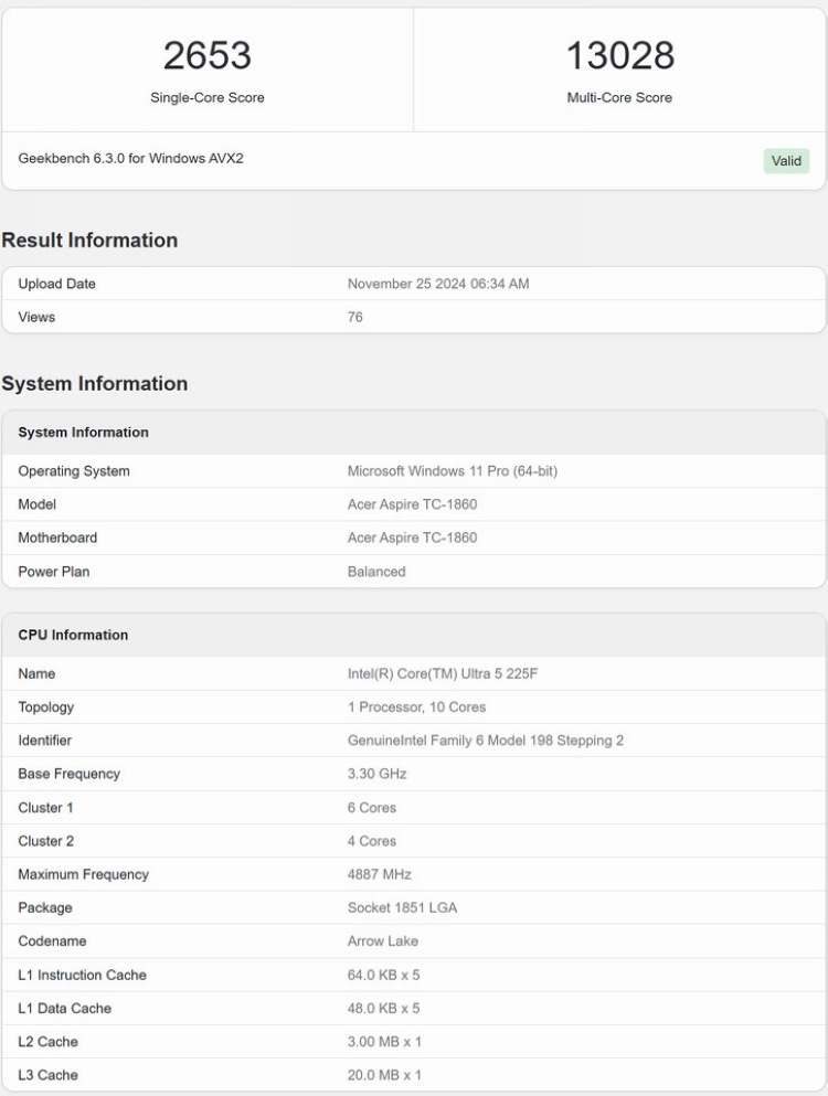 日前,一颗型号为酷睿Ultra 5 225F 的处理器出现在GB 跑分库中,不带核显,核心规格已经曝光。