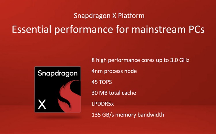 虽然定位不高,但 Snapdragon X 并没有严重缩水,采用和Snapdragon X Elite 相同的 Oryon CPU 内核,而且核数量没有减少,也有八个,就像 Snapdragon X Plus 一样。只是频率拉低,Snapdragon X 频率为 3.0 GHz,而不是 Snapdragon X Plus 的 3.2 至 3.4 GHz 或 Snapdragon X Elite 的 3.4 至 3.8 GHz。
