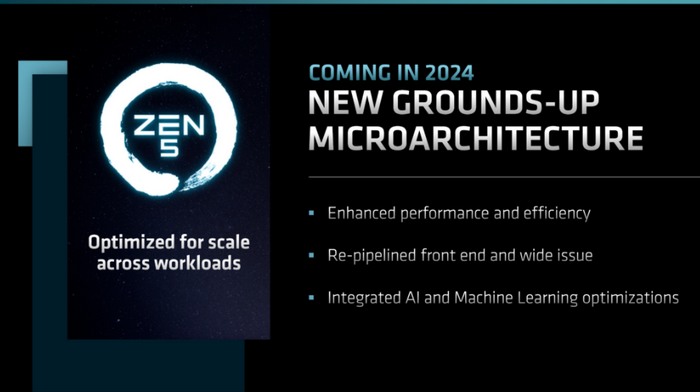 而随后的 Zen 5 架构,除了性能和能效比提升外(具体没说),还将在 AI 和 MI 方面有大幅提升。