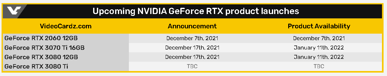 三款新卡分别是RTX 2060 12GB,RTX 3070 Ti 16GB和RTX 3080 12GB,都是原计划在10月就应该发布的产品。
