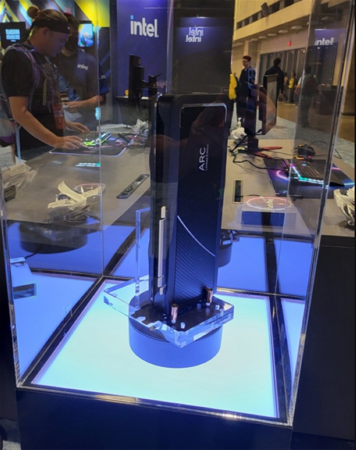 国外爆料者theBryceIsRt在IEM大赛展台上看到了“锐炫”独显的真容,和之前公布的渲染官图一样。
