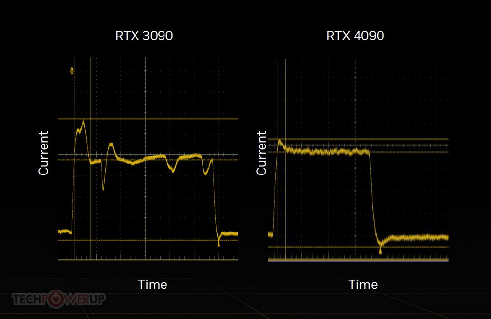 值得一提的是,官方表示已重新设计显存供电,采用PID 控制器反馈来回路,拥有更好的瞬态表现,电压供应更稳定,对比RTX 3090 Ti看到纹波波动更小。