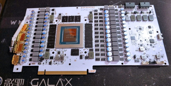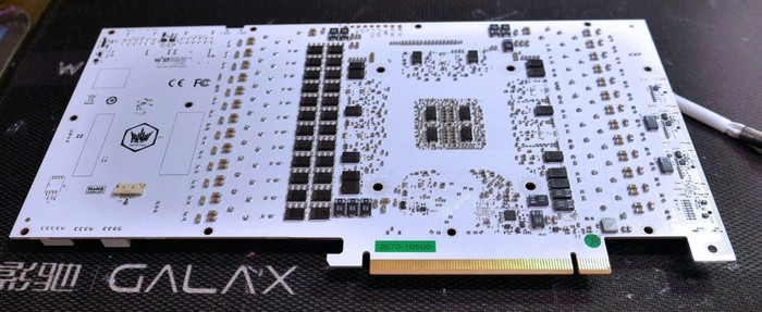 影驰 GALAX RTX 4090 HOF 可能还没有准备好上市,所以目前只送给OCer们测试和超频用,所以没有看到显卡散热器,当然对于这些玩家而言也没有必要有,毕竟都是直接上“炮”的。