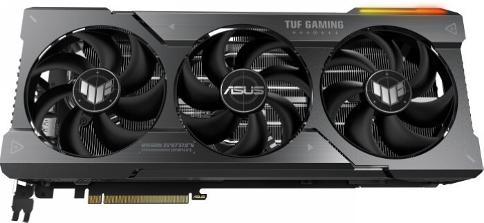 如图,都采用三风扇散热模组,占用3.63个槽位,比纯公版要厚一些。整体设计相对低调,右上角风罩有些许灯效装饰,整体颜值上和纯公版其实差不多。华硕官方声称,他们的风扇直径变化一些(较RX 6900系列),风量提升13.8%,风压提升8%,然而噪音不变。