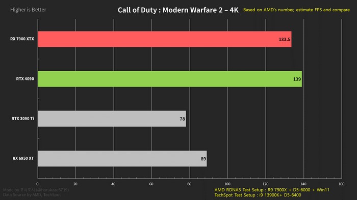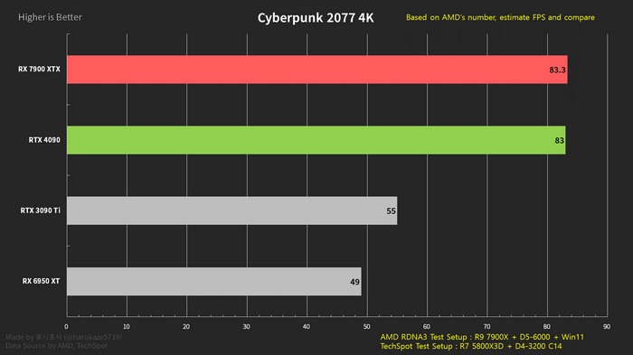 Radeon RX 7900 XTX 能否和 RTX 4090 一较高下吗?细心网友 harukaze5719(推特)整理数据,给出了合理具有参考价值的结论。