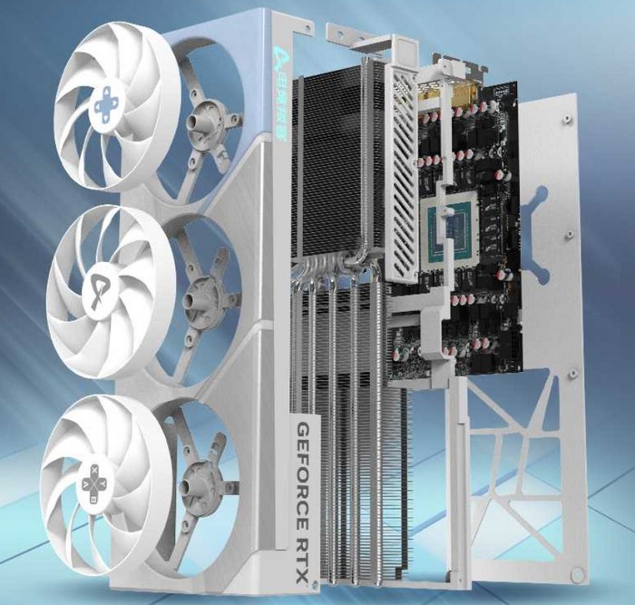 不过,还有一些品牌还能买到,就比如AX电竞判客的 RTX 4090,售价和纯公版价格一样为12999元,白色涂装,配有顶级三风扇散热器。