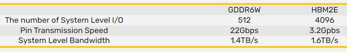 性能方面,三星 GDDR6W 在 512 个系统级 I / O 和每个引脚 22Gpbs 的传输速率下,可以产生 1.4TB / s 的带宽。