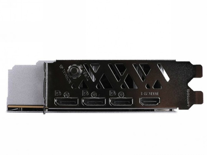 默频2205MHz,Boost可加速至2505MHz,支持一键超频至2640MHz(尾部有一键超频按键)。显存方面,搭载16GB 256bit GDRR6X显存,等效22.4Gbps。尾部的扩展包括3个DP和1个HDMI。