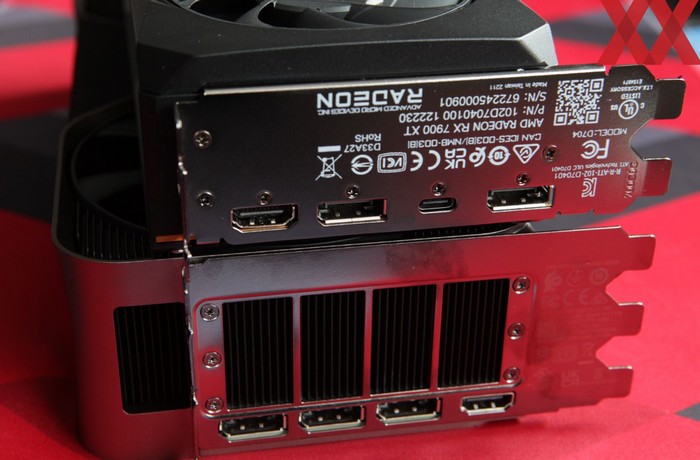 尺寸方面,RX 7900 XTX 长 287 毫米,宽125 毫米,RX 7900 XT 长 267 毫米,宽112 毫米,两款都是2.5槽位;而 RTX 4090 纯公版长304 毫米,宽137 毫米; RTX 4080 纯公版长304 毫米,宽137 毫米,两款都是3槽位。当然,RX 7900 XTX / XT 的非公版也不薄,有许多都是3槽,不过仍比4090/4080薄,大多 RTX 4090 都是3.25槽位,一些甚至出现了3.5槽位。