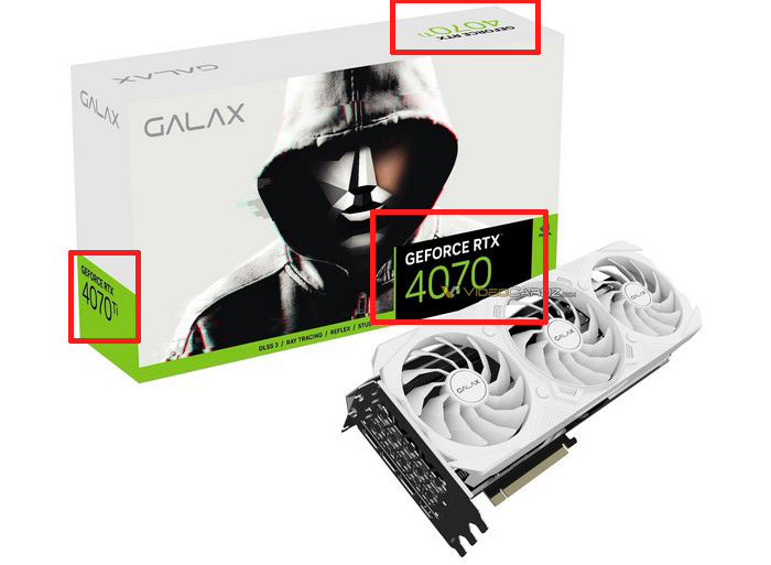 需要注意的是,虽然渲染图来自影驰官网,但盒子上同时有 RTX 4070 和 RTX 4070 Ti 字样 ,所以上面的型号介绍时我们两个都标注了。我猜测,这可能是影驰在做 RTX 4070 包装渲染图时,图省事用 RTX 4070 Ti 的(共用一套散热模组),而非 Ti 版本的包装盒忘记抹掉侧面的”Ti”了。