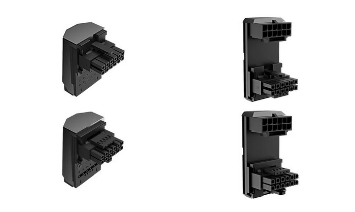 为了更好的解决这个问题,高端客制化线材供应商 Cablemod 开发了一个转接头,90°转接供电,而且还提供新 16Pin(12VHPWR)转 3x 8pin 的方案,所以有了这个插头就可以避免供电接口弯折问题,而且还能用老电源。