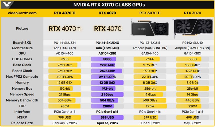 目前国内大多 RTX 4070 Ti 非公版价格在6499-6999元之间,预计非公版RTX 4070 在4199-4599元左右,这样的话,会和 RTX 3070 Ti 价格差不多。