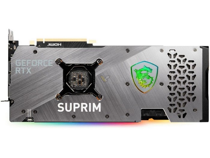 该卡设计跟微星 RTX 3070 SUPRIM 一样,颜值很高,拉丝风罩,RGB幻彩灯效,背板有醒目 SUPRIM 的标志,TORX 4.0 三风扇也很特别,对于这个级别散热器明显过渡冗余了。