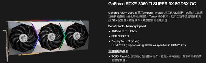 据微星香港官网消息,微星已低调上架了 GeForce RTX 3060 Ti SUPER 3X 8GD6X OC 非公卡,这是 RTX 3060 系列的第四款,看配置规格是在 RTX 3060 8GB 版本上改进而来,而不是12GB版本。
