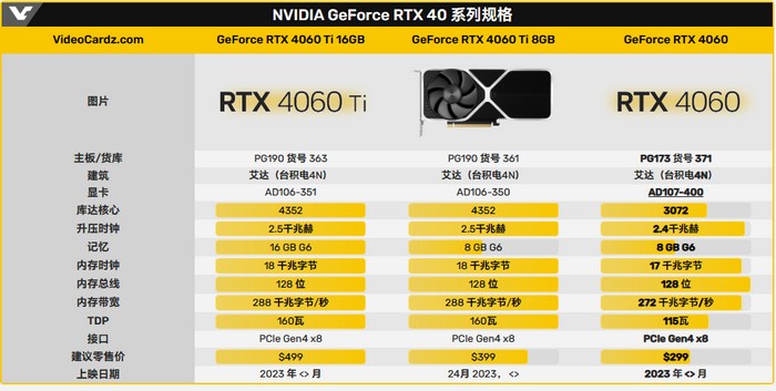 之前有人猜测,RTX 4060 Ti 和 RTX 4060 可能采用的是相同的核心,发布会后以为是 NVIDIA官方搞错了(4060 Ti 是 AD106、RTX 4060 是 AD107),只是阉割部分核心下放而已。