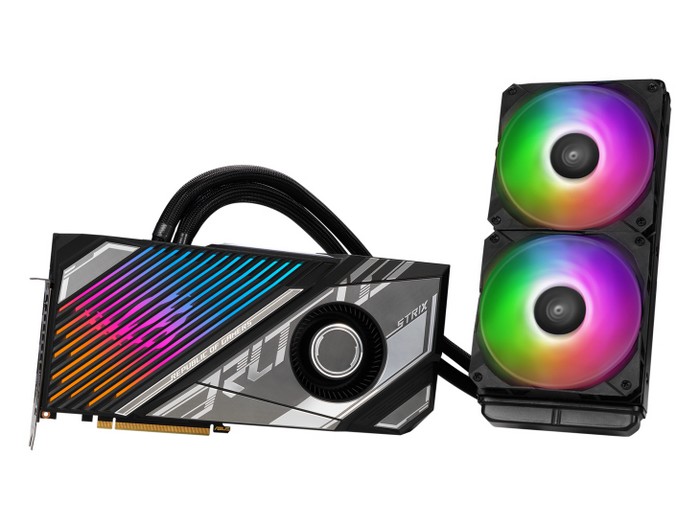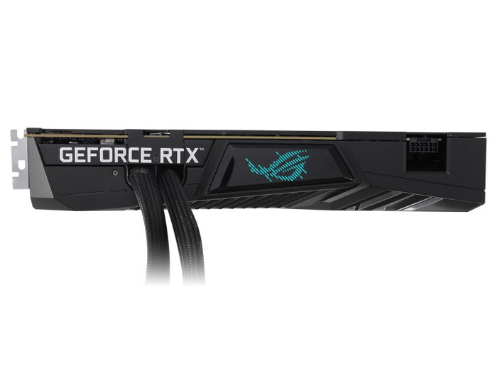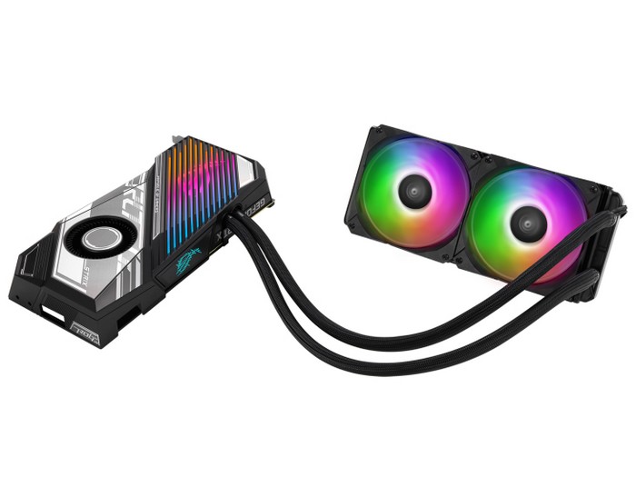 外观设计和之前的RTX 3090 Ti Strix LC 水冷版一样,采用相同散热器、水冷头和风扇,集成华丽 Aura Sync 灯效,依旧是混合水冷方案,除风扇外,还自带一个240mm冷排,适合顶级玩家选择。
