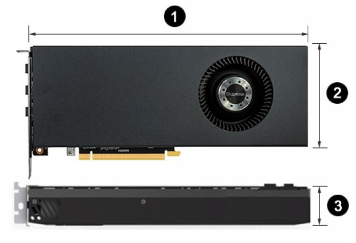 四四方方的风罩,没有任何装饰,配有一把加厚双滚珠轴承涡轮风扇,风扇的具体规格未透露。该卡占用双槽空间,长265 毫米,相对紧凑。